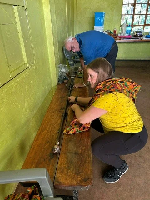 For projects, we had Lynn working with the center teacher (mwalimu), Ms. Patience. Lynn brought a lot of great classroom supplies including a hand made alphabet that is prominently displayed in the classroom now. Steve and Diana worked on regarding curtains through the school and by the end worked like a well oiled machine.