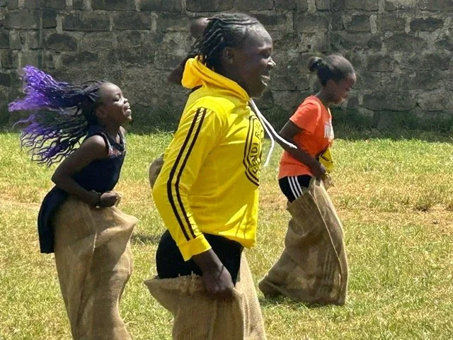 Heidi rounded all those joyful faces up and began another afternoon of sweaty laughter and smiling sunbaked faces. The gunny sack races proved to be as hilarious as they were at Green Pastures. The egg drop was also enjoyed by big and little kids alike and even a few caregivers. Then was the ring toss and this when things really heated up. By the end of the ring toss there was a pretty intense competition among the big kids playing for points. Then the paper plate scramble followed by the grand finale of Machaa target practice. An added bonus was when Heidi and Diana jumped in to give Machaa a reprieve but it only just meant three people got soaking wet!