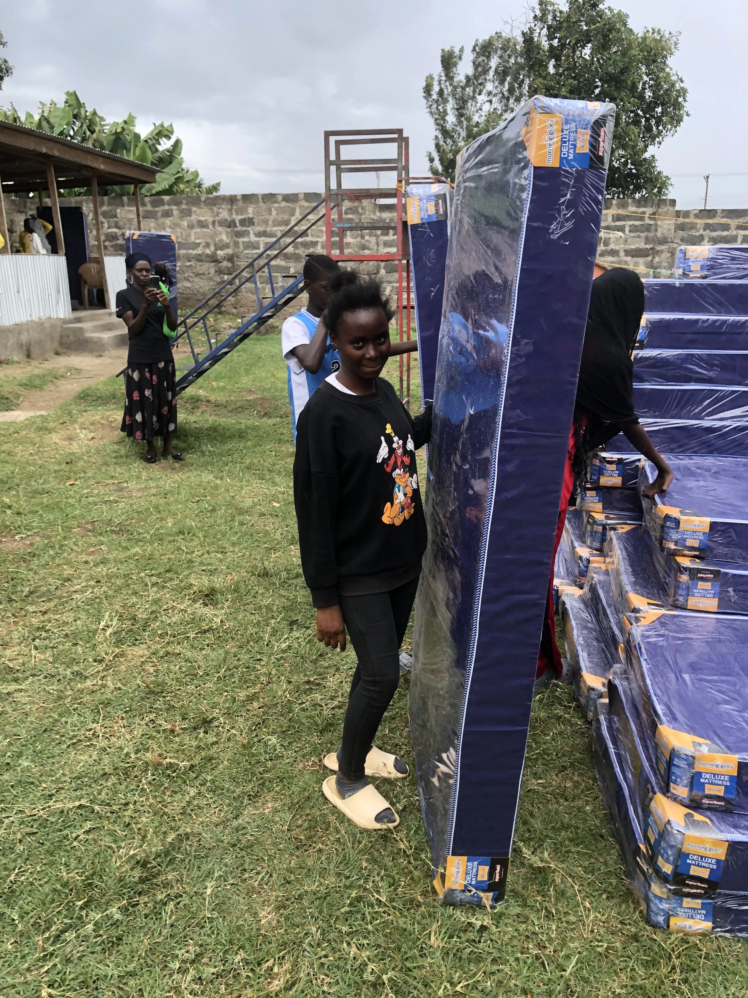 The rains didn’t dampen the mood and we were able to hand out the mattresses to the kids. The mattresses were still in the plastic bags they came in and so there was no chance of them getting wet. We thank God for a wonderful day and thanks to you too for making the celebrations happen.